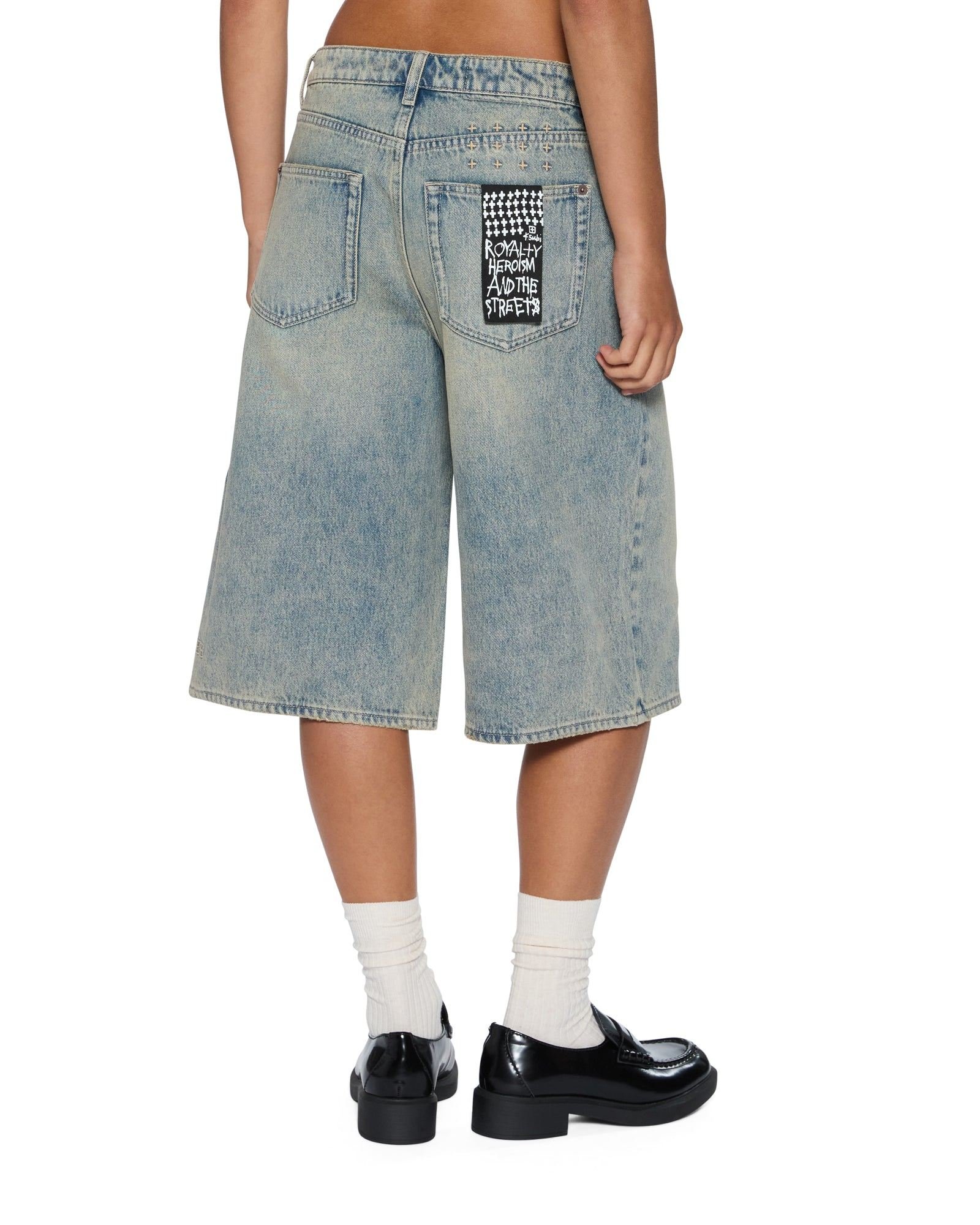 The Low Rider Short Folk is a low-rise, longer length denim short designed to finish just below the knee. Made from premium rigid indigo denim with subtle grinding and signs of wear, it features an asymmetric waistband, Ksubi hardware, T-box and 3x4 embroidery, and a removable pocket tag on the right back pocket.
