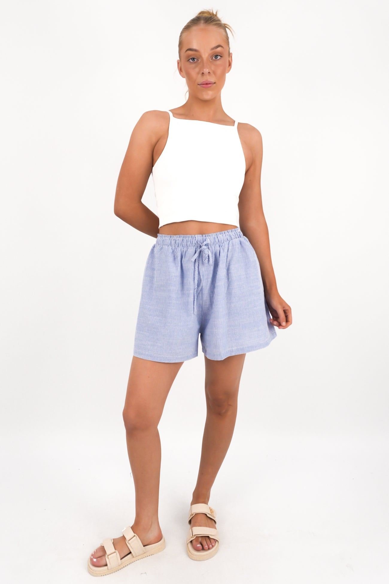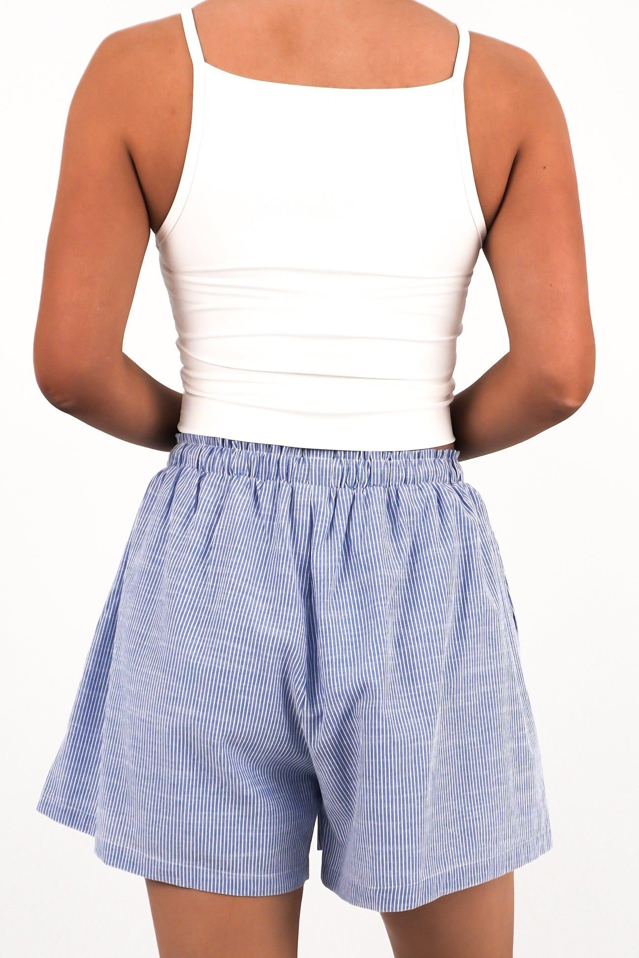 Easy, breezy, and made for sunny days, the Gabbi Short in Blue Stripe is a warm-weather staple. Featuring a relaxed fit, elastic waistband, and lightweight fabric, these shorts offer all-day comfort with a crisp, coastal vibe. Details:- Relaxed fit- Elastic waistband- Drawstring- Lined- Side pockets- 100% Cotton