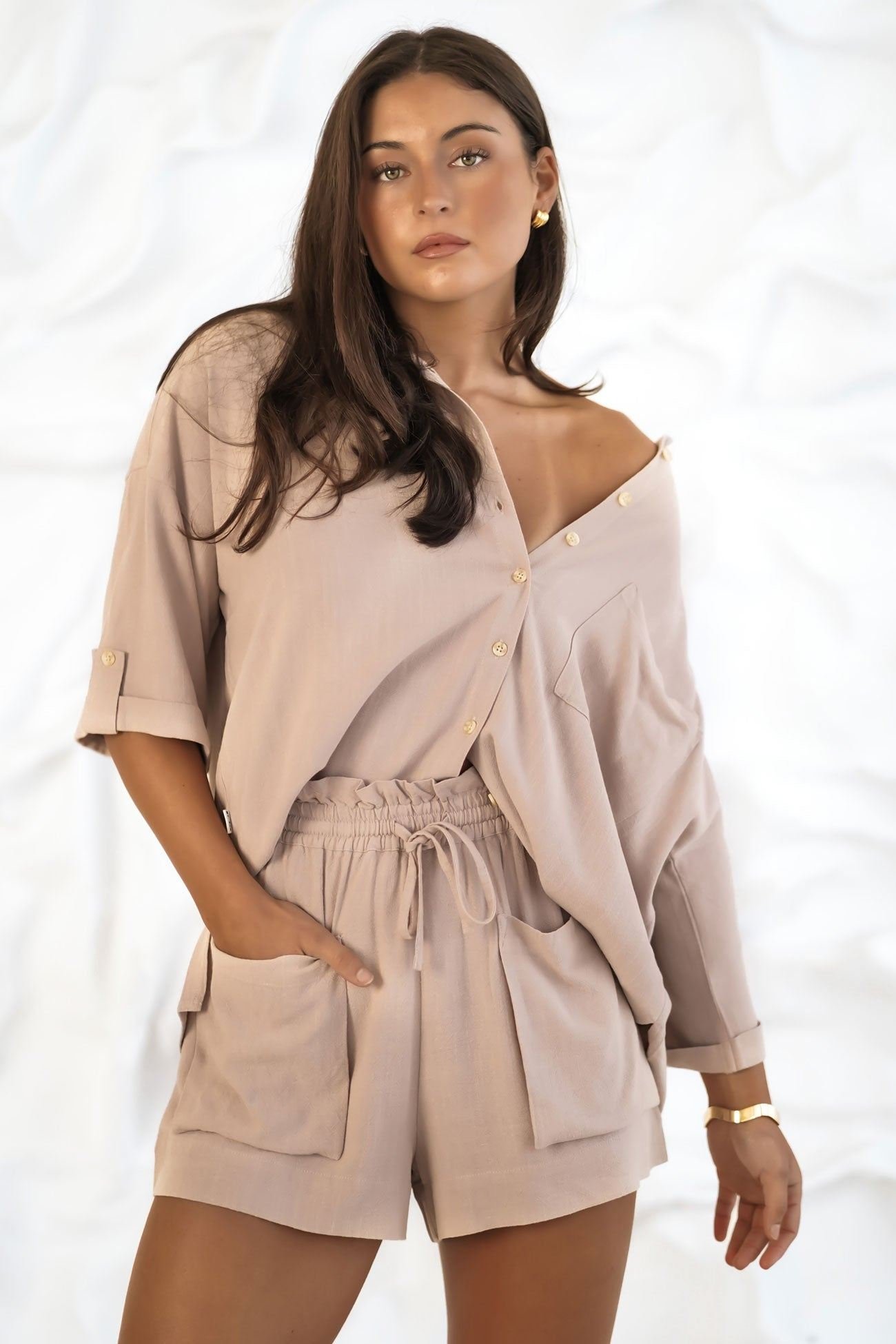 Say hello to Logan Pocket Short Tan! This pocket short is an everyday essential that you won't want to leave behind. Perfect for errands or lazy days, its design provides both comfort and style. Details:- High waisted- Paper bag waist with self tie- Front pockets- Super soft material- 70% Viscose 30% Linen